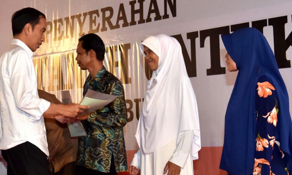 Dalam kesempatan itu Jokowi sempat menghitung berapa warga yang mendapatkam sertifikat. Menurut Jokowi, sertifikat ini sebagai tanda bukti hukum atas tanah yang dimiliki. Presiden juga menanyakan mengapa warga tidak sejak lama mengurus sertifikat tanah padahal dokumen itu penting.