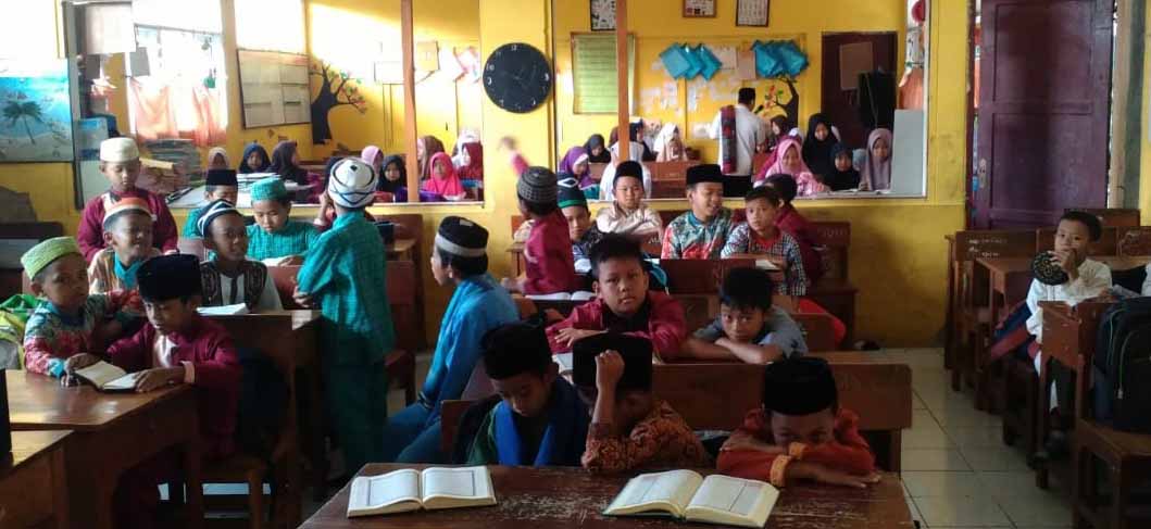 GUNUNGGURUH –Sekolah Dasar Negri (SDN) Kutamaneuh Desa Cikujang Kecamatan Gunungguruh Kabupaten Sukabumi Jawa Barat, gelar pesantren kilat (Sanlat) di ruangan kelas, Sabtu (18/05).
