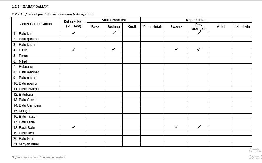 SUMBER DATA YANG DIGUNAKAN UNTUK MENGISI PROFIL DESA/KELURAHAN