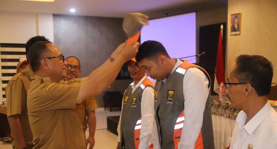 Dalam kesempatan tersebut Sekda di dampingi Kepala Dinas PU secara simbolis memakaikan rompi dan topi Bimtek Pengawas Lapangan kepada 3 orang peserta, selanjutnya Sekda menerima Plakat dari Balai Jasa Kontruksi Wilayah III Jakarta Dirjen Bina Kontruksi Kementrian PUPR. (Nur)