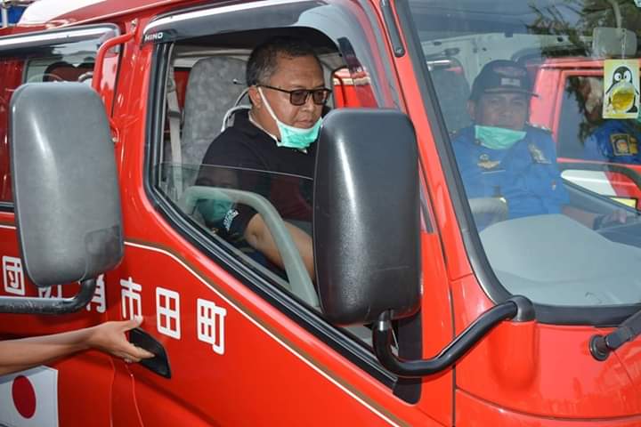 Dengan mengendarai Mobil Pemadam Kebakaran Marwan Hamami di bantu petugas Damkar, Satpol PP TNI dan Polri serta petugas dari dinas kesehatan.