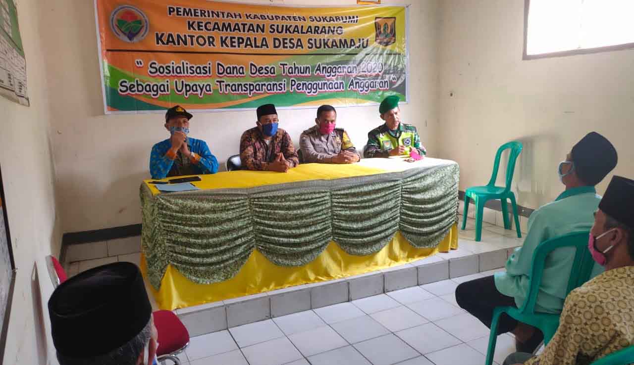 SUKALARANG — Sebanyak 68 orang yang terdiri dari para Ketua RT, RW, Karang Taruna, MUI, BPD, LPMD, PKK dan unsur kelembagaan lainnya, di Desa Sukamaju Kecamatan Sukalarang Kabupaten Sukabumi Jawa Barat, hadiri sosialisasi Dana Desa (DD) 2020 di Aula Desa Sukamaju Jum’at, (15/05/2020).
