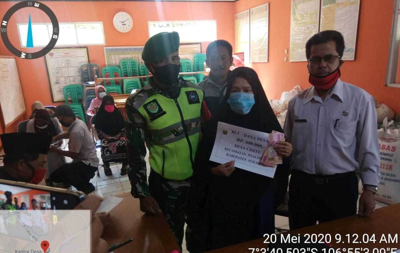 NYALINDUNG — Sebanyak 147 Keluarga Penerima Manfaat (KPM) terima Bantuan Langsung Tunai (BLT) Dana Desa (DD) tahap satu 2020 sebesar Rp.600.000; di Aula Desa Cisitu Kecamatan Nyalindung Kabupaten Sukabumi Jawa Barat beberapa waktu yang lalu.