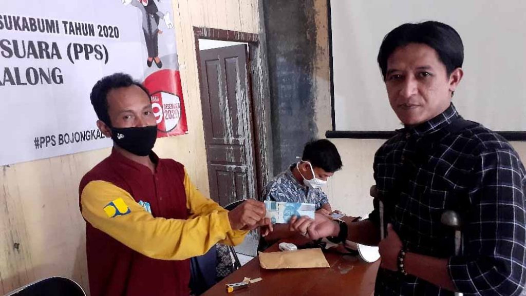NYALINDUNG — Bantuan Langsung Tunai (BLT) Dana Desa (DD) 2020 kembali direalisasikan Pemerintah Desa (Pemdes) Bojongkalong Kecamatan Nyalindung Kabupaten Sukabumi Jawa Barat, di Aula Desa Bojongkalong belum lama ini.