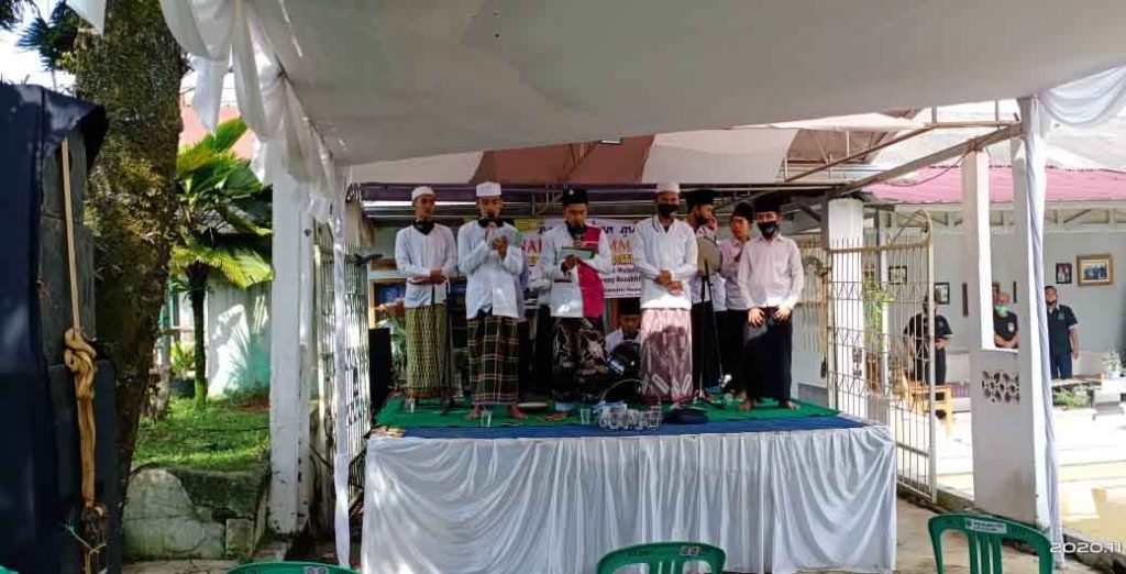 GEGERBITUNG — Junjung tinggi ukhuwah islamiah dan berakhlaqul karimah, Pemerintah Desa (Pemdes) Gegerbitung Kecamatan Gegerbitung Kabupaten Sukabumi Jawa Barat, gelar Maulid Nabi Muhammad SAW di Kampung Cikaret RT003/004 Minggu, (22/11/2020).