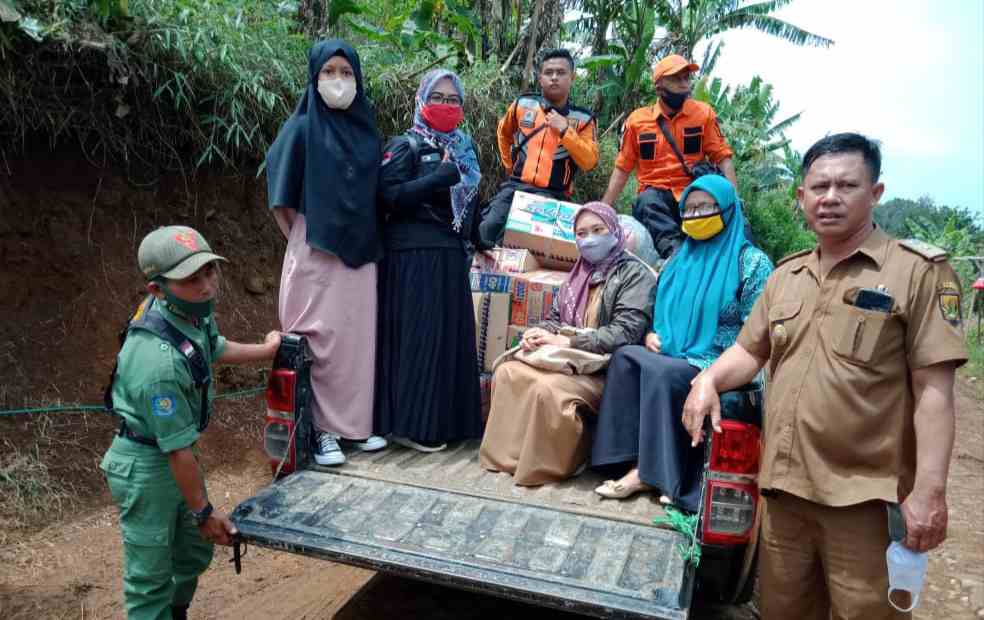 NYALINDUNG — Kader Pemberdayaan Kesejahteraan Keluarga (PKK) di Desa Wangunreja Kecamatan Nyalindung Kabupaten Sukabumi Jawa Barat, adakan Bakti Sosial (Baksos) untuk korban pergerkan tanah di wilayah Nyalindung, Senin, (15/02/2021).