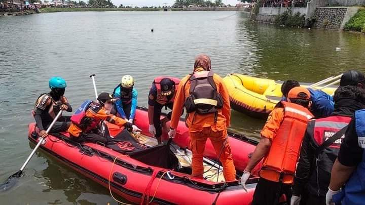 SUKARAJA — Pencarian Ramdan (18) korban tenggelam di Situ Batu Karut Kecamatan Sukaraja Kabupaten Sukabumi Jawa Barat, Senin (4/10/21) kemarin, akhirnya berhasil ditemukan Tim SAR Gabungan dikedalaman tujuh meter.