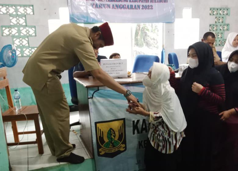 BANTARGADUNG — Pemerintah Desa (Pemdes) Mangunjaya Kecamatan Bantargadung Kabupaten Sukabumi Jawa Barat, kembali mendistribusikan Bantuan Langsung Tunai (BLT) Dana Desa (DD) tahap satu periode Januari, Februari dan Maret 2022. Proses pembagian bantuan kepada 126 Keluarga Penerima Manfaat (KPM) itu dipusatkan di Aula Desa Mangunjaya, Selasa, (22/03/2022).