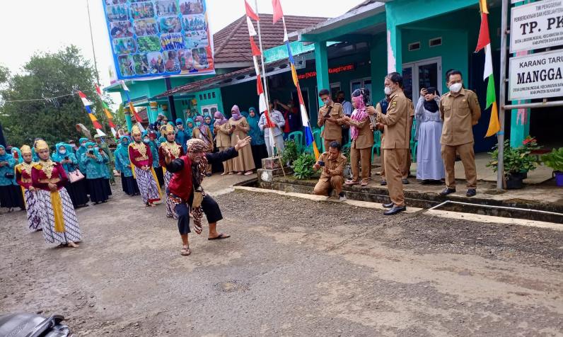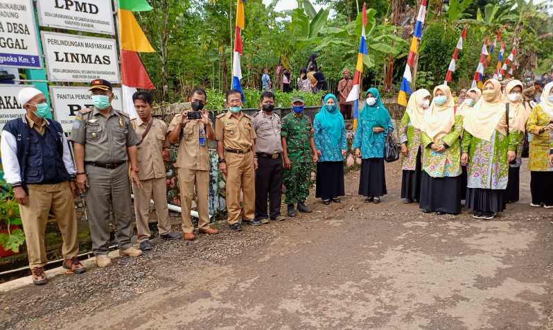BANTARGADUNG — Tim Evaluasi dan Monitoring (Monev) 5 Lomba 10 Program Pemberdayaan dan Kesejahteraan (PKK) Tingkat Kabupaten Sukabumi Jawa Barat, lakukan penilaian Lomba Desa Model di Desa Limusnunggal, Selasa, (22/03/2022).