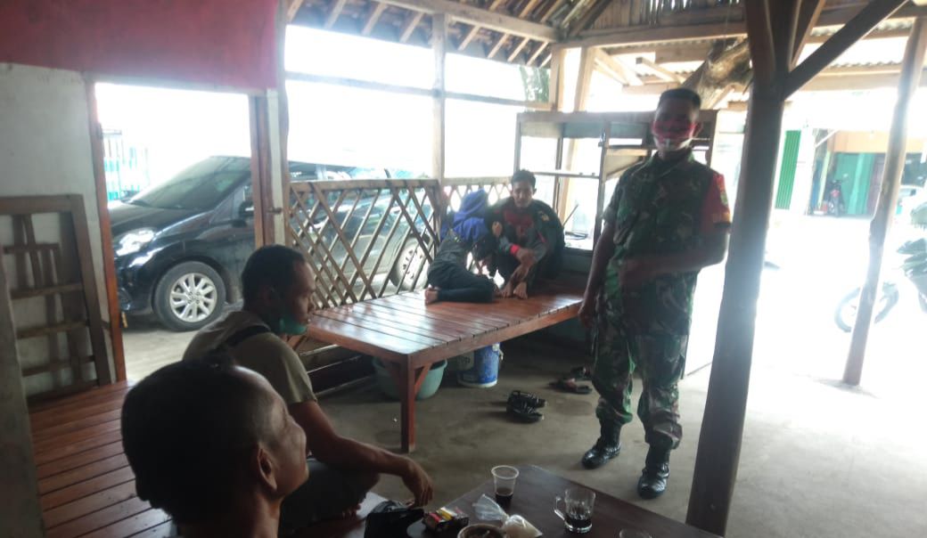 TEGALBULEUD — Tetap jaga kondusifitas pasca Pemilihan Kepala Desa (Pilkades) serentak 2022 di Desa Rambay dan Calingcing Kecamatan Tegalbuleud, Babinsa Koramil 0622-12/Tegalbuleud Kecamatan Tegalbuleud Kodim 0622/Kabupaten Sukabumi Jawa Barat, giat Komunikasi Sosial (Komsos) bersama tokoh masyarakat di wilayah desa binaa, Sabtu (14/05/2022).