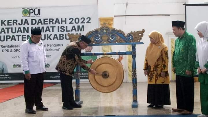 Pembukaan Rakerda PUI tingkat Kabupaten Sukabumi 2022 ditandai dengan pemukulan Gong oleh Wabup Sukabumi.