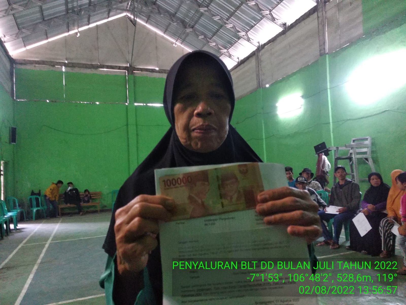 JAMPANGTENGAH — Pemerintah Desa (Pemdes) Sindangresmi Kecamatan Jampangtengah Kabupaten Sukabumi Jawa Barat, salurkan Bantuan Langsung Tunai (BLT) yang bersumber dari Dana Desa (DD) 2022 di Aula Desa Sindangresmi, Selasa (02/08/2022).