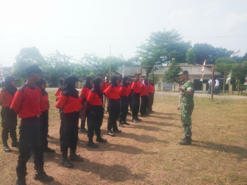 JAMPANGTENGAH — Anggota Koramil 0622-07/Jampangtengah Kecamatan Jampangtengah Kodim 0622/Kabupaten Sukabumi Jawa Barat, terus gembleng tim Pasukan Pengibar Bendera Pusaka (Paskibraka) tingkat Kecamatan Jampangtengah, Kamis (11/08/2022).