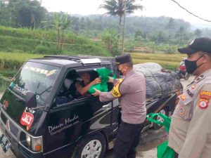 NYALINDUNG, sukabumizone.com – Polsek Nyalindung Polres Sukabumi memberikan bantuan sosial kepada sopir angkutan umum dan pengemudi ojeg di wilayahnya. Pembagian dilakukan oleh Kapolsek Nyalindung AKP Dandan Gaos beserta jajaran.