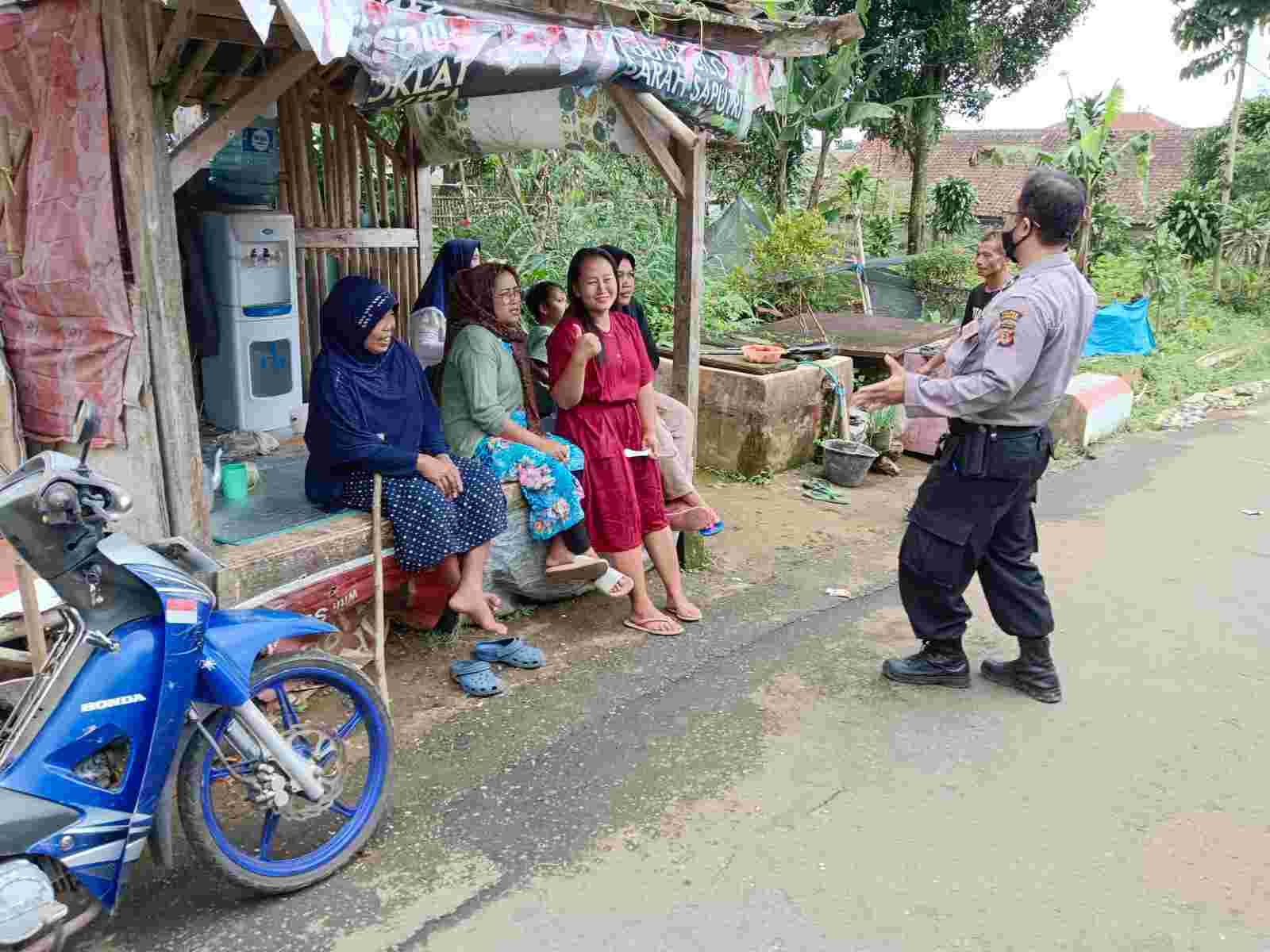 Menyikapi hal tersebut, anggota Samapta Polsek Sukabumi Polres Sukabumi Kota Aipda Chandra melaksanakan sambang dan berbaur kepada warga serta memberikan pesan Kamtibmas bagi Ibu-ibu yang sedang nongkrong, Senin (12/9/2022).
