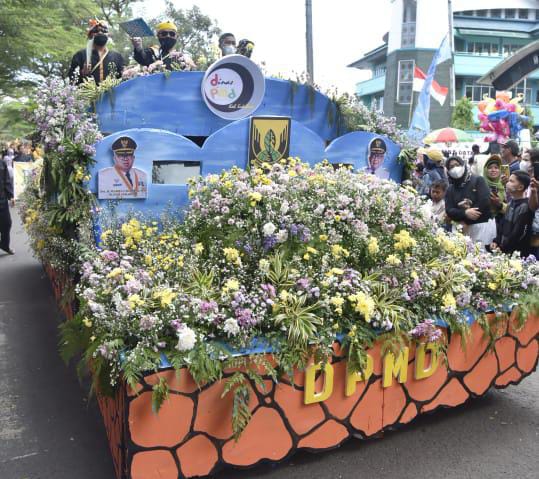 Dalam karnaval tersebut, seluruh pegawai DPMD ikut andil mengiringi kendaraan yang dihias sedemikian rupa menggunakan berbagai macam jenis bunga. Bahkan, ada juga dua buah simbol Leuit (Lumbun Padi Khas Sunda red) sebagai lambang kemakmuran masyarakat desa.