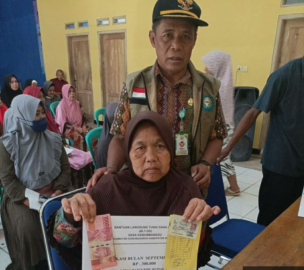 GUNUNGGURUH, sukabumizone.com || Pemerintah Desa (Pemdes) Kebonmanggu, Kecamatan Gunungguruh, Kabupaten Sukabumi, membagikan kembali Bantuan Langsung Tunai Dana Desa (BLT DD) di Aula Desa Kebonmanggu, Kamis (22/09/2022).