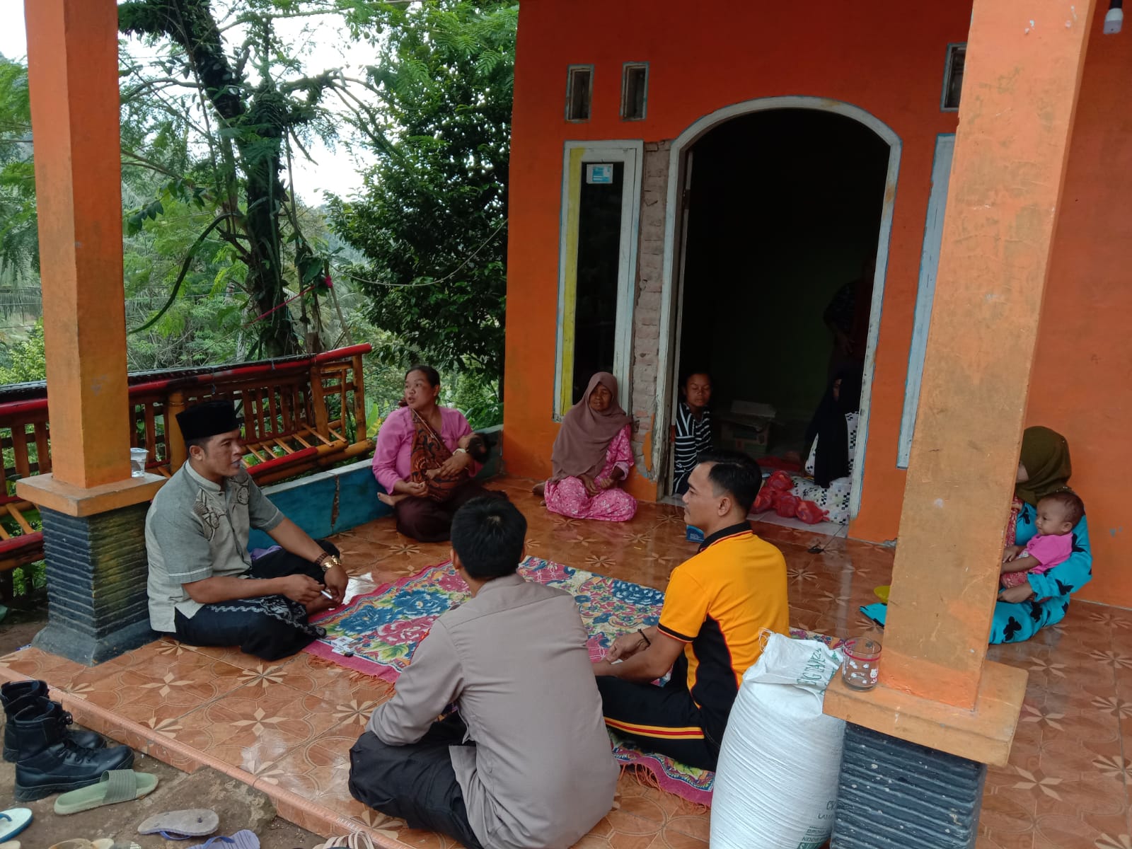 BERKABUNG: Suasana di rumah korban meninggal dunia akibat tersengat listrik Desa Gandasoli Kecamatan Cikakak.