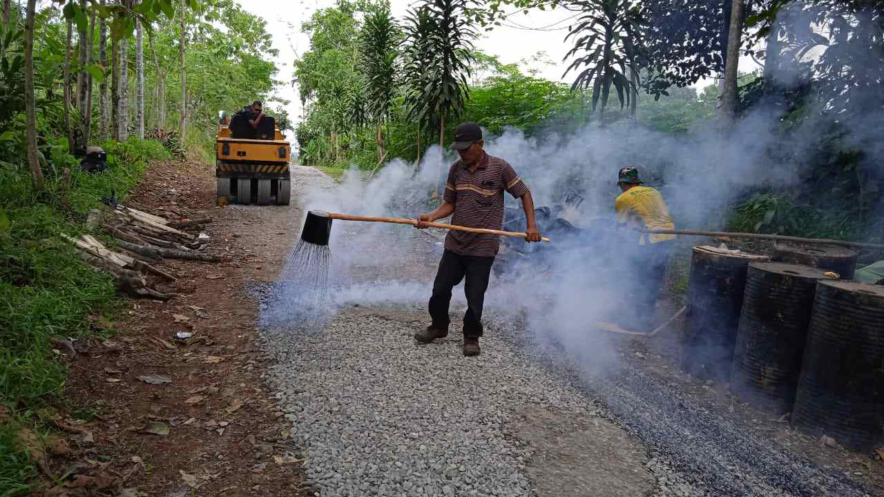 WARUNGKIARA, sukabumizone.com || Pemerintah Desa (Pemdes) Damarraja Kecamatan Warungkiara Kabupaten Sukabumi Jawa Barat, realisasikan pengaspalan jalan yang bersumber dari Bantuan Provinsi (Banprov) 2022, Rabu (19/10/2022).
