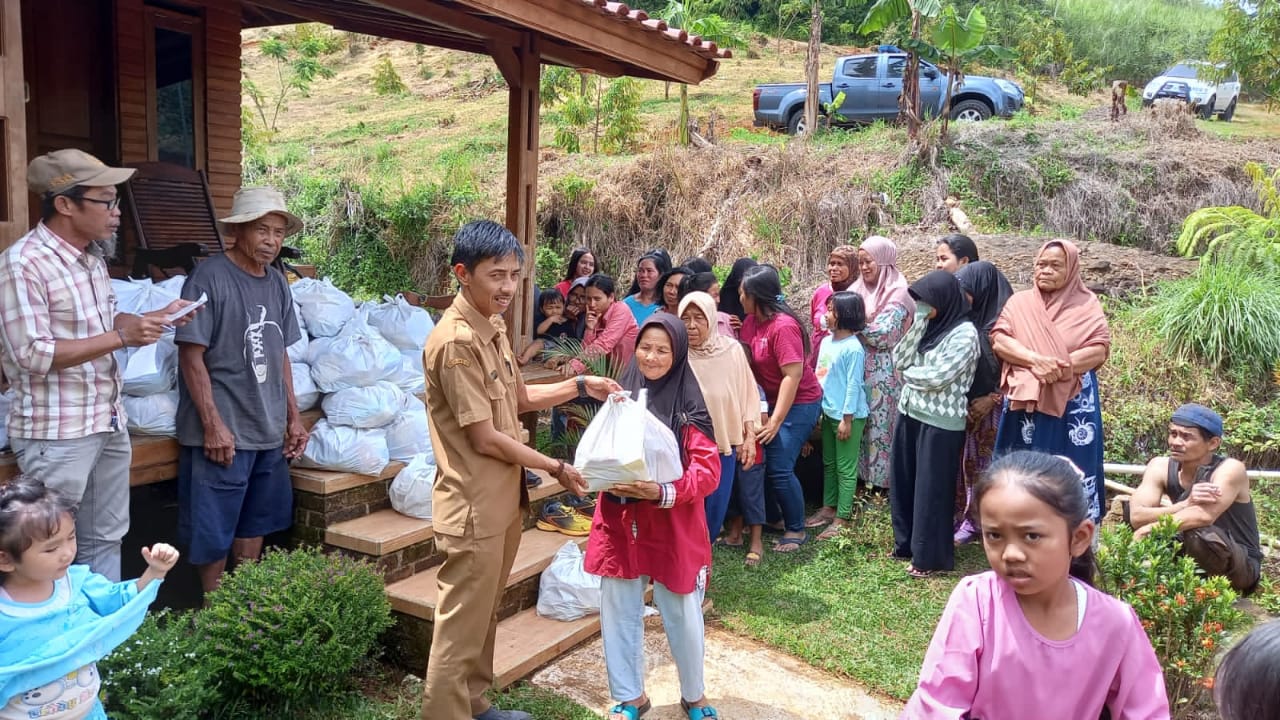 Ratusan paket sembako ini dibagikan kepada warga yang berlokasi di kebun durian Rawabolang Kampung Bungur RT 32 RW 04 Desa Bojongjengkol.