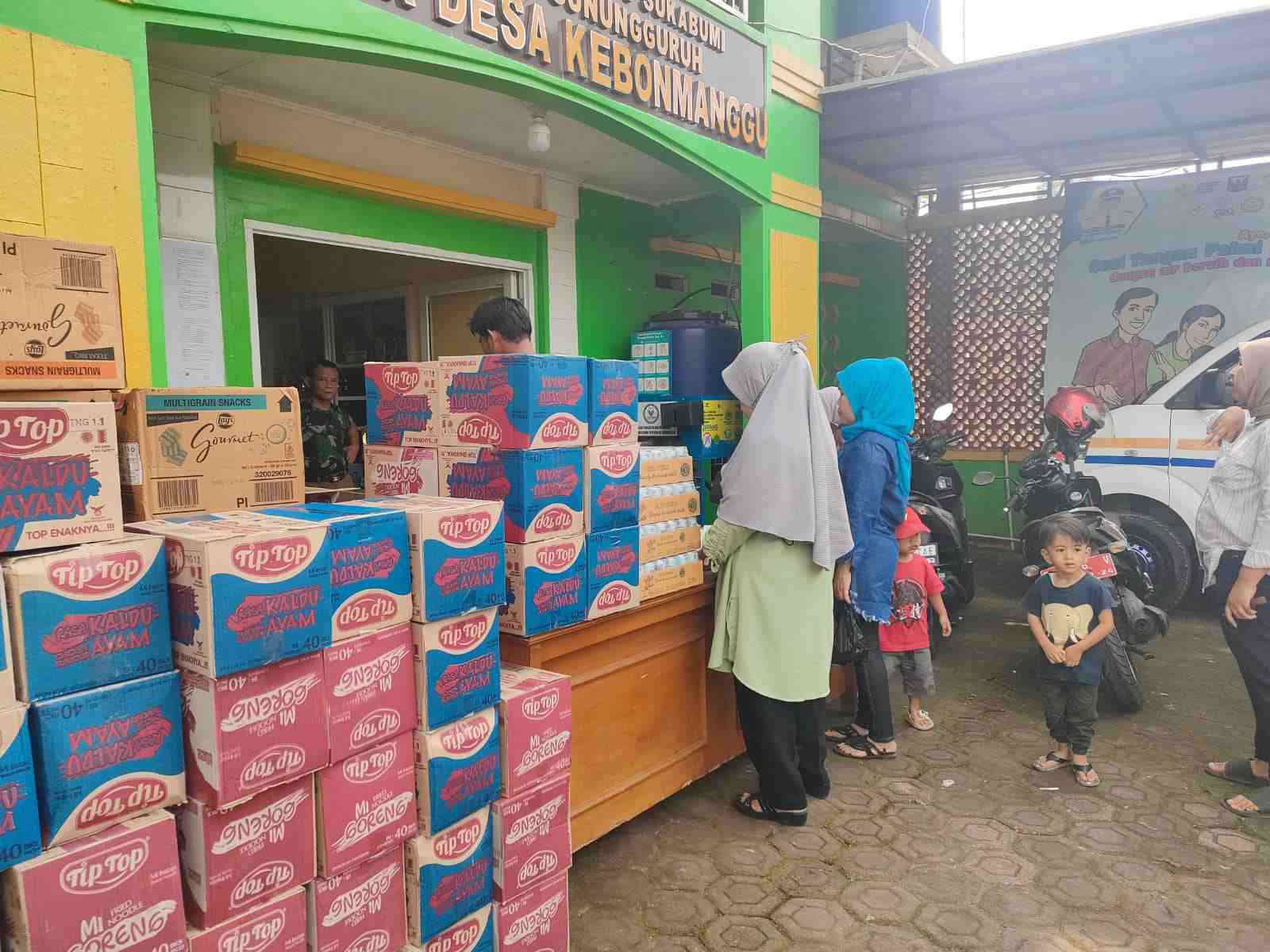 GUNUNGGURUH, sukabumizone.com || Pemerintah Desa Kebonmanggu, Kecamatan Gunungguruh, Kabupaten Sukabumi, tuntas mendistribusikan pangan mie peduli Paket Luarbiasa Murah (Pak Lu-rah), Senin (30/01/2023).