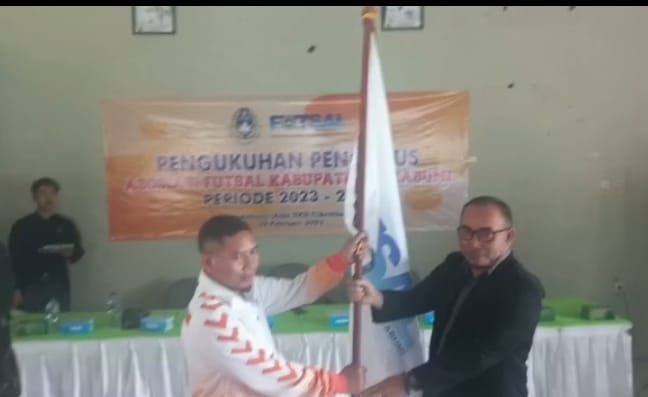 CIKEMBAR, sukabumizone.com || Ketua Umum Asosiasi Futsal Provinsi Jawa Barat (AFP Jabar), Herman mengukuhkan kepengurusan Asosiasi Futsal Kabupaten (Afkab) Sukabumi periode 2023-2027, Minggu (19/3/2023).