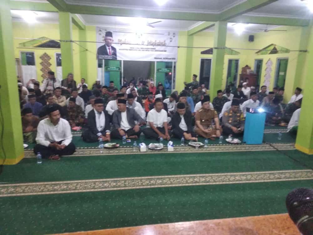 JAMPANGTENGAH, sukabumizone.com || Danramil 0622-07/Jampangtengah, Kapten Agus Rahman bersama Forum Komunikasi Pimpinan Kecamatan (Forkopimcam) Kecamatan Jampangtengah, melaksanakan istighosah dan pembagian Bantuan Sosial (Bansos) secara virtual di Masjid Al Huriyyah Jampangtengah, Minggu (19/2).