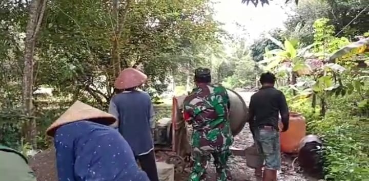 Sebagai seorang Babinsa harus mampu menjadi penggerak dan menjadi teladan bagi masyarakat dalam melaksanakan gotong royong di setiap kegiatan di wilayah. Dalam hal ini Serda Amat Herwanto tanpa ragu memegang cangkul, sekop dan mengaduk campuran material bersama warga, untuk memperkeras jalan kampung Pojok di wilayah Binaan, karena akses jalan tersebut sangat penting dan memudahkan pengguna jalan di desa tersebut.