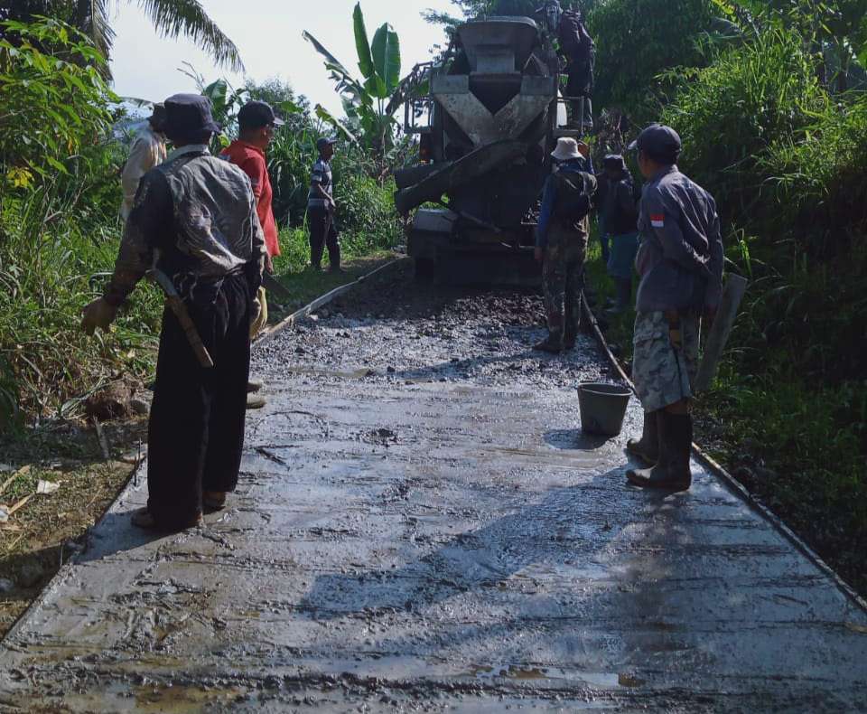 SUKALARANG, sukabumizone.com || Pemerintah Desa Sukalarang, Kecamatan Sukalarang, Kabupaten Sukabumi, Rabat Beton Jalan Desa, Kamis (27/07/23).