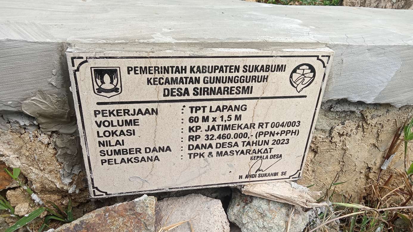 Kepala Desa Sirnaresmi H. Andi Sukandi mengatakan, pembangunan TPT itu sudah berdasarkan usulan masyarakat dan musyawarah bersama.
