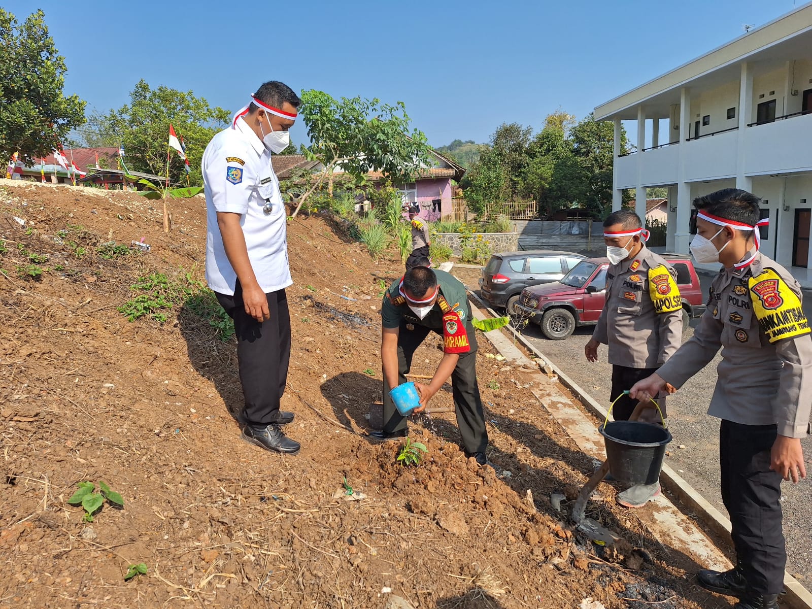 Koramil 0622-07/Jampangtengah bersama Forkopimcam saat menanam pohon di Kampung Nanggela Nanggela, Desa/Kecamatan Jampangtengah, Kabupaten Sukabumi. FOTO: IST