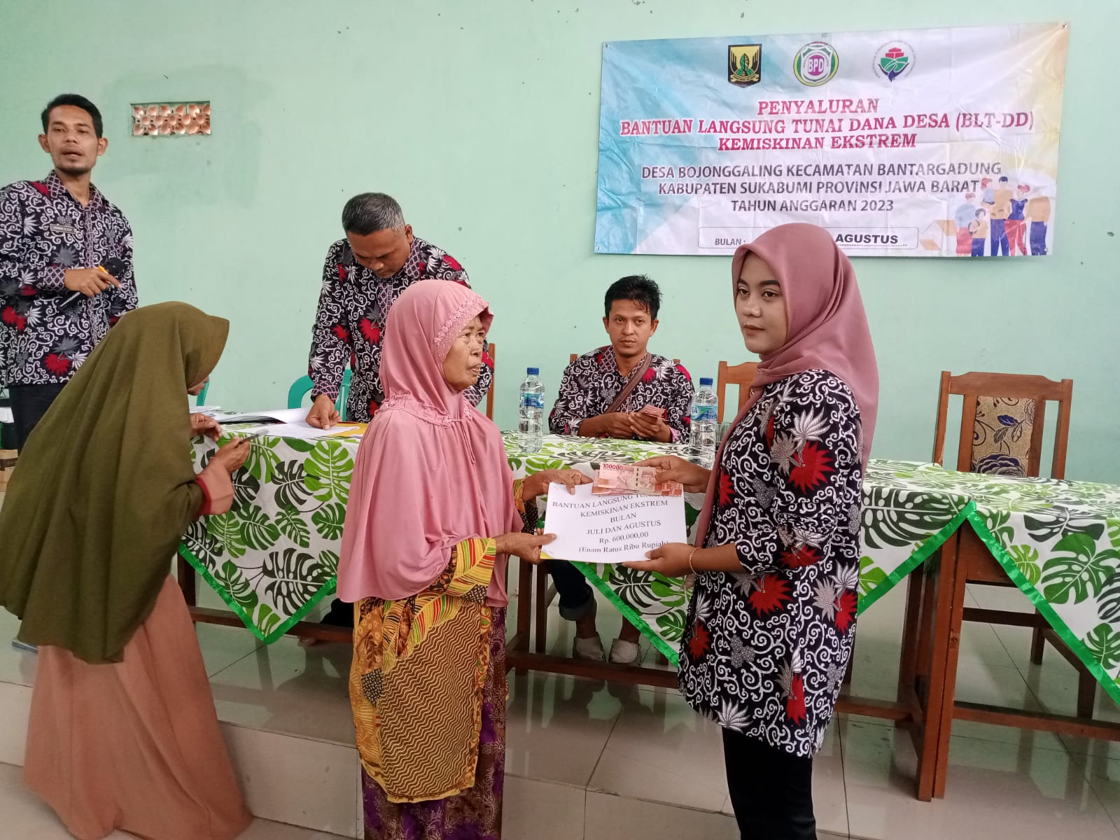 BANTARGADUNG, sukabumizone.com || Penyaluran Bantuan Langsung Tunai (BLT) – Dana Desa (DD) untuk masyarakat miskin ekstrem terus di salurkan oleh Pemerintah Desa Bojonggaling, Kecamatan Bantargadung, Kabupaten Sukabumi kepada warga yang berhak menerimanya.