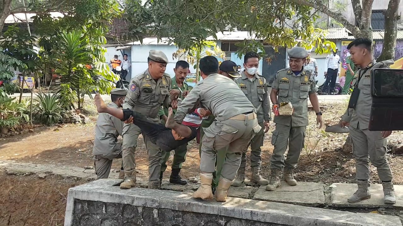 CIKEMBAR, sukabumizone.com || Satuan Polisi Pamong Praja (Satpol PP) Kabupaten Sukabumi mengamankan seorang pria yang diduga mengalami gangguan jiwa. Pasalnya pria diduga ODGJ itu hendak menerobos ke lokasi kegiatan yang dihadiri Bupati Sukabumi di halaman belakang kantor BPBD Kabupaten Sukabumi di Cikembar sembari membawa sebatang kayu, Rabu (23/8).