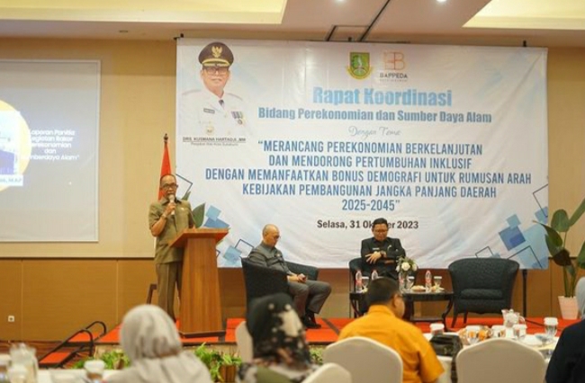 SUKABUMI KOTA, sukabumizone.com || Badan Perencanaan Pembangunan Daerah (Bappeda) Kota Sukabumi menggelar Rapat Koordinasi penyusunan RPJPD 2025-2045 melalui Bidang Perekonomian dan Sumber Daya Alam (PSDA) di Hotel Horison Kota Sukabumi, Selasa (31/10/2023).