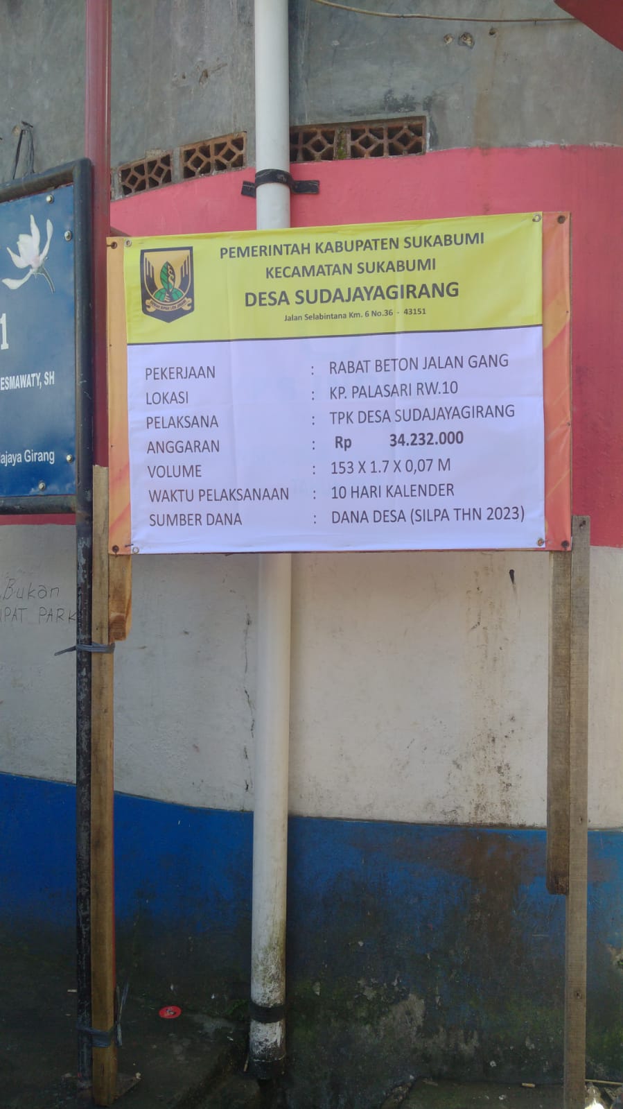 Diketahui Pembangunan infrastruktur jalan Lingkungan tersebut memiliki panjang 153 meter, lebar 1,7 meter dan tinggi 0,07 meter dengan sumber anggaran dari Dana Desa (DD) Silpa 2023, sebesar Rp 34.232.000.