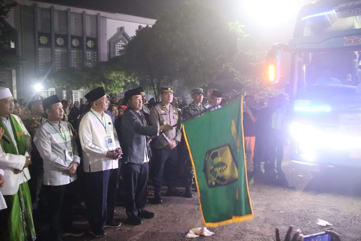 SUKABUMI KAB, sukabumizone.com || Sekretaris Daerah (Sekda) Kabupaten Sukabumi Ade Suryaman, melepas calon jemaah haji Kloter 03 Kabupaten Sukabumi tahun 1445 H/2024 di Pusbangdai Cikembang, Minggu (12/05/24).