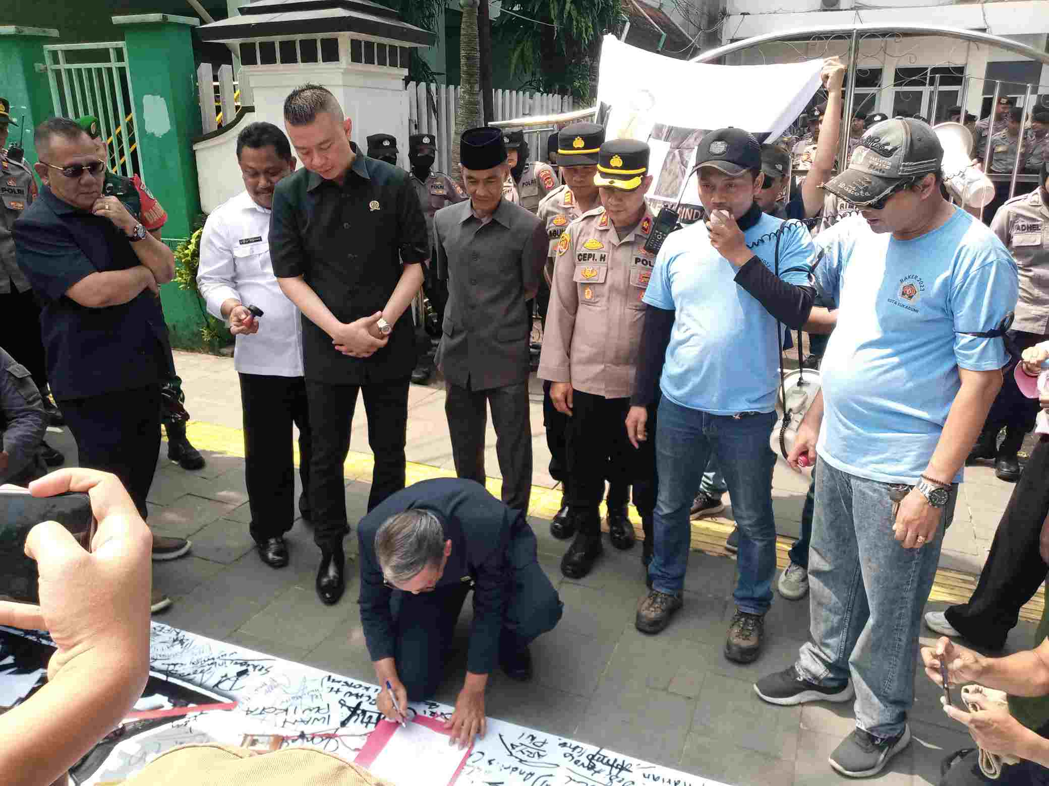 Koordinator Lapangan dari PWI Kota Sukabumi, Herlan Heriyadie menambahkan, puluhan jurnalis Sukabumi mendesak unsur Forkopimda Kota Sukabumi, khususnya DPRD Kota Sukabumi untuk berkirim surat kepada Komisi I DPR RI terkait penolakan Revisi RUU Penyiaran.