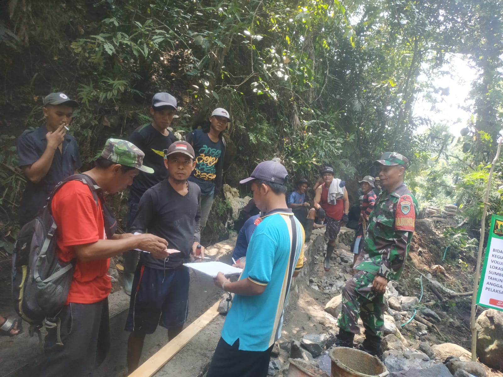 WARUNGKIARA, sukabumizone.com || Bintara Pembina Desa (Babinsa) Mekarjaya Koramil 0622-03/Warungkiara, Serka Surata melaksanakan karya bakti perbaikan saluran irigasi di Kampung Babakan, Desa Mekarjaya, Kecamatan Warungkiara, Kabupaten Sukabumi.