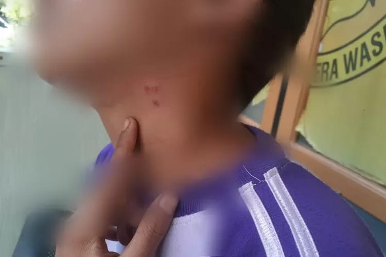PALABUHANRATU, sukabumizone.com || Siswa Sekolah Dasar (SD) berinisial MPI (12) warga Kecamatan Palabuhanratu, Kabupaten Sukabumi, diduga dicekik oleh oknum guru berinisial TD hingga berdarah.