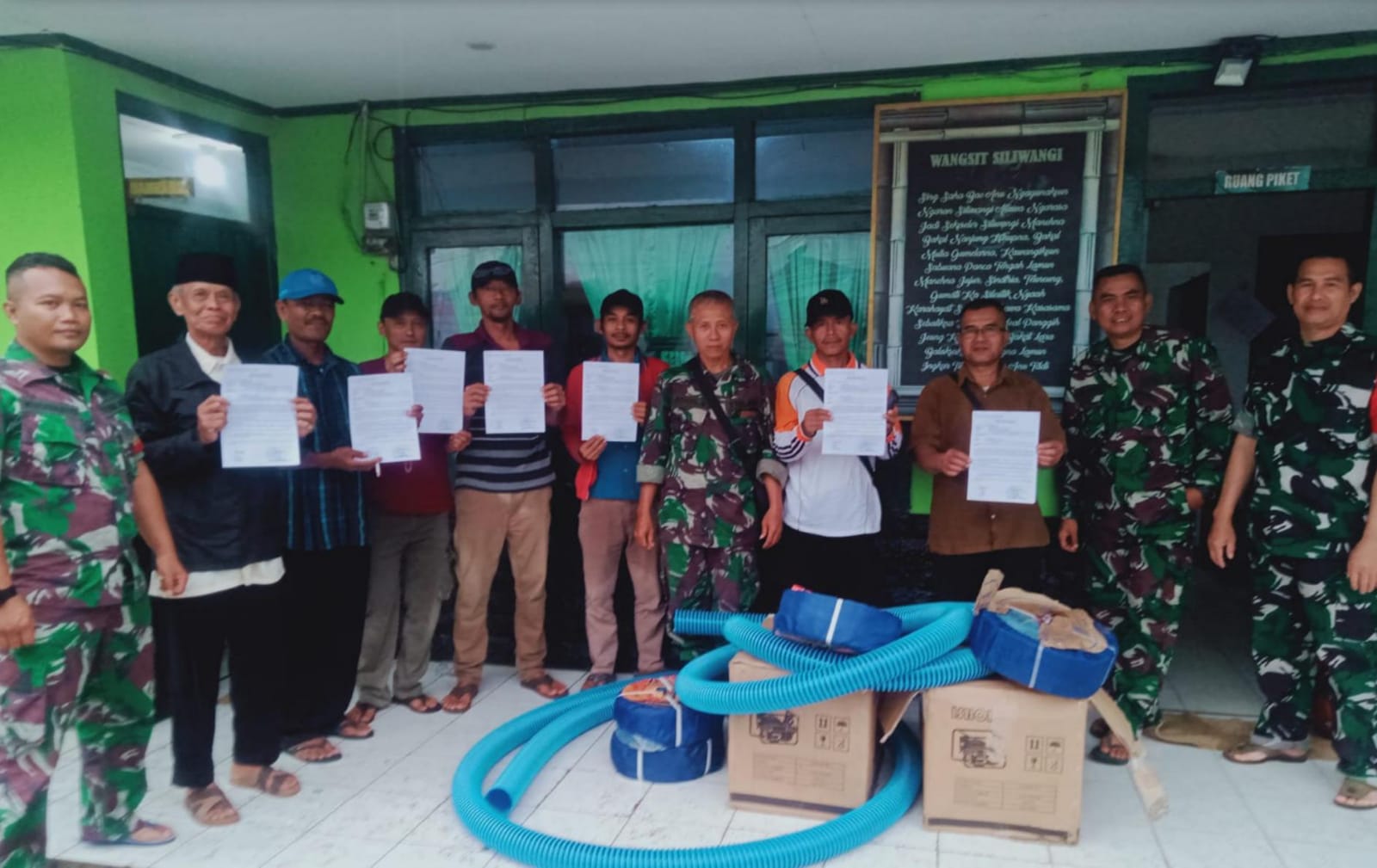 WARUNGKIARA, sukabumizone.com || Danramil 2203/Warungkiara, Kapten Inf Agus Rahman menyalurkan bantuan mesin pompa air kepada Kelompok Tani (Poktan) di Kecamatan Warungkiara dan Bantargadung, Rabu (26/6).