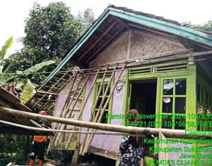 NYALINDUNG, sukabumizone.com || Rumah milik Asep, Warga Kampung Bungbulang RT 003/005 Desa Cijangkar, Kecamatan Nyalindung, Kabupaten Sukabumi, mengalami kerusakan akibat longsor dan tanah di sekitar rumah Asep juga mengalami retakan yang cukup menghawatirkan.
