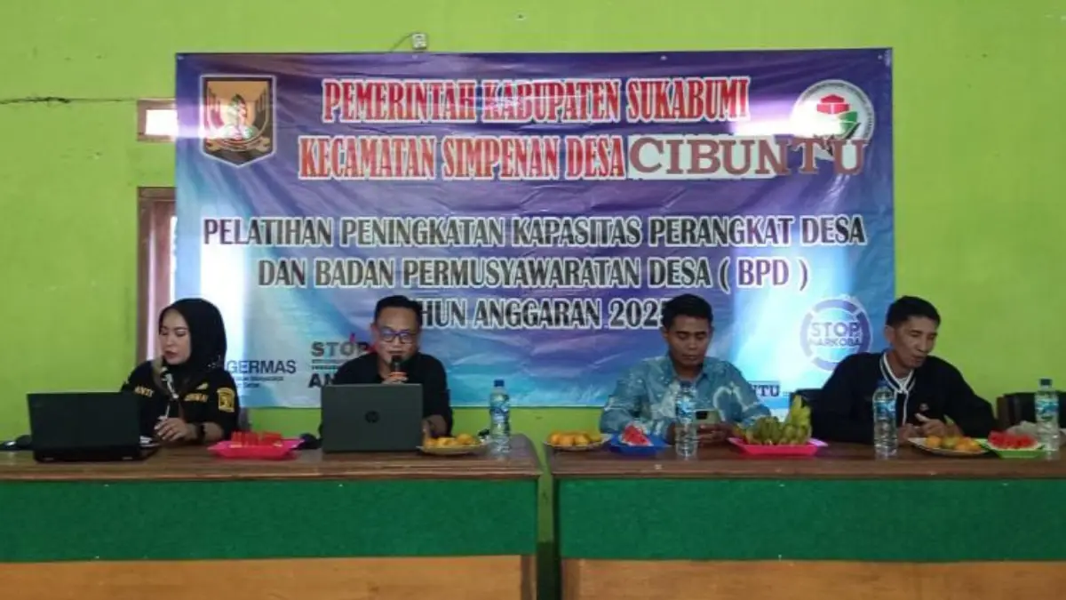 SUKABUMI, sukabumizone.com || Dalam upaya meningkatkan kualitas tata kelola pemerintahan desa, Dinas Pemberdayaan Masyarakat dan Desa (DPMD) Kabupaten Sukabumi menggelar kegiatan peningkatan kapasitas bagi perangkat desa dan Badan Permusyawaratan Desa (BPD) di Desa Cibuntu, Kecamatan Simpenan, belum lama ini.