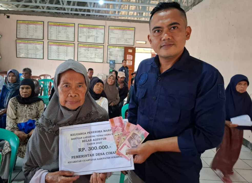 CICANTAYAN, sukabumizone.com || Pemerintah Desa Cimahi, Kecamatan Cicantayan, Kabupaten Sukabumi kembali menyalurkan Bantuan Langsung Tunai Dana Desa (BLT-DD) kepada warga yang masuk dalam kategori kemiskinan ekstrem. Penyaluran bantuan untuk periode Agustus 2025 ini diberikan kepada 48 Keluarga Penerima Manfaat (KPM), bertempat di Aula Kantor Desa Cimahi, Selasa (12/8/2025).