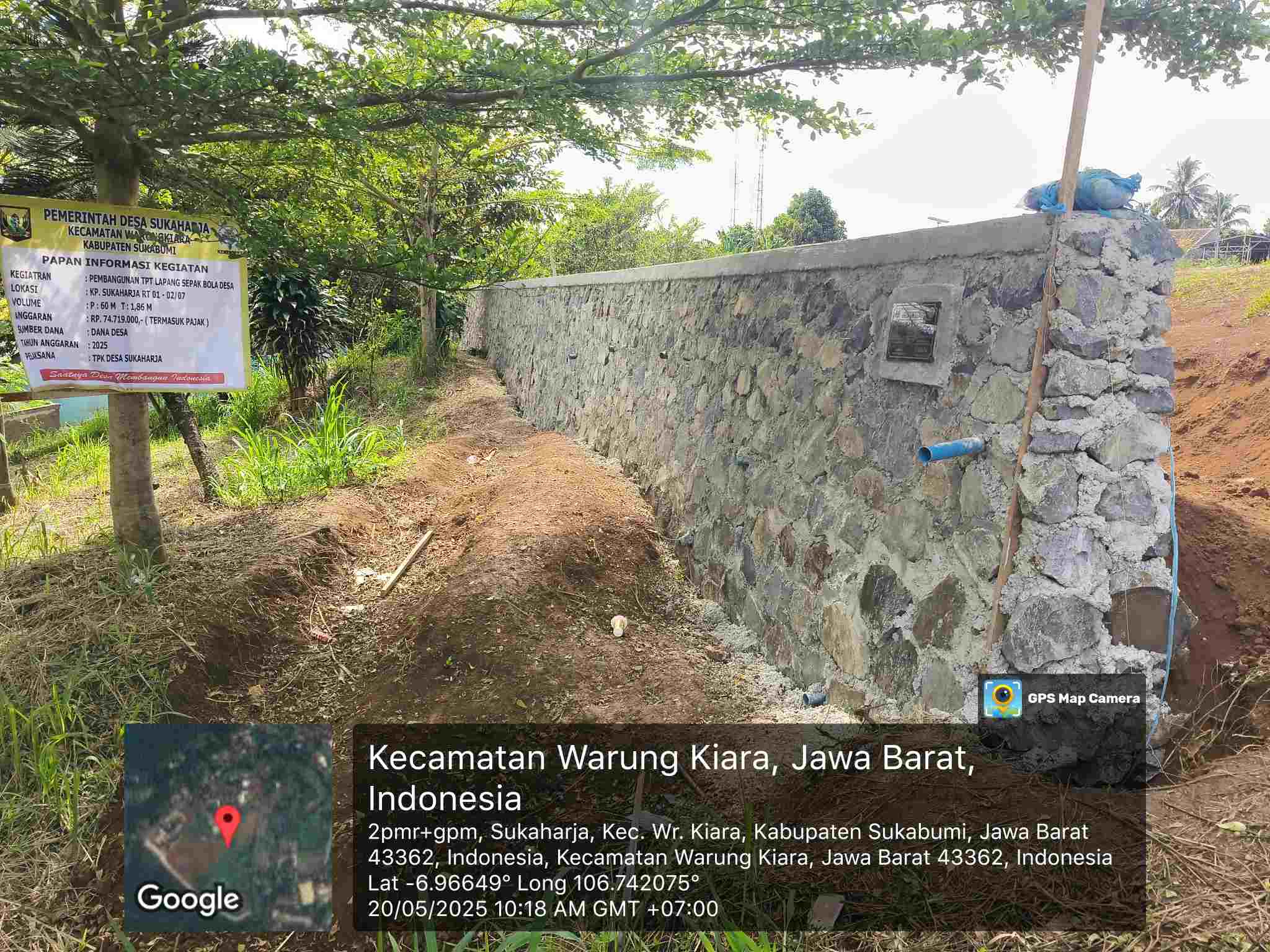WARUNGKIARA, sukabumizone.com | Pemerintah Desa (Pemdes) Sukaharja, Kecamatan Warungkiara, Kabupaten Sukabumi kembali menuntaskan pembangunan infrastruktur desa. Kali ini, pembangunan difokuskan pada pembuatan tembok penahan tanah (TPT) di area lapangan sepak bola Desa Sukaharja.