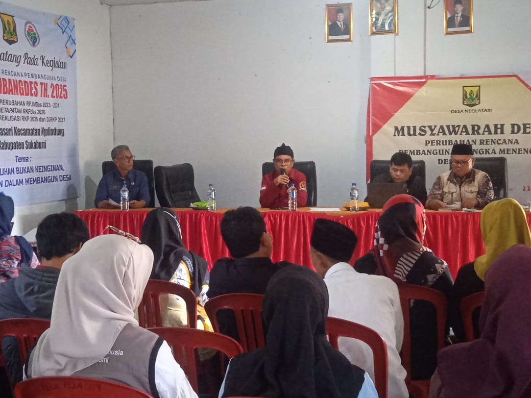 NYALINDUNG, sukabumizone.com | Pemerintah Desa (Pemdes) Neglasari, Kecamatan Nyalindung, Kabupaten Sukabumi menggelar Musyawarah Perencanaan Pembangunan Desa (Musrembang) di aula desa pada Kamis pagi (9/10/2025).