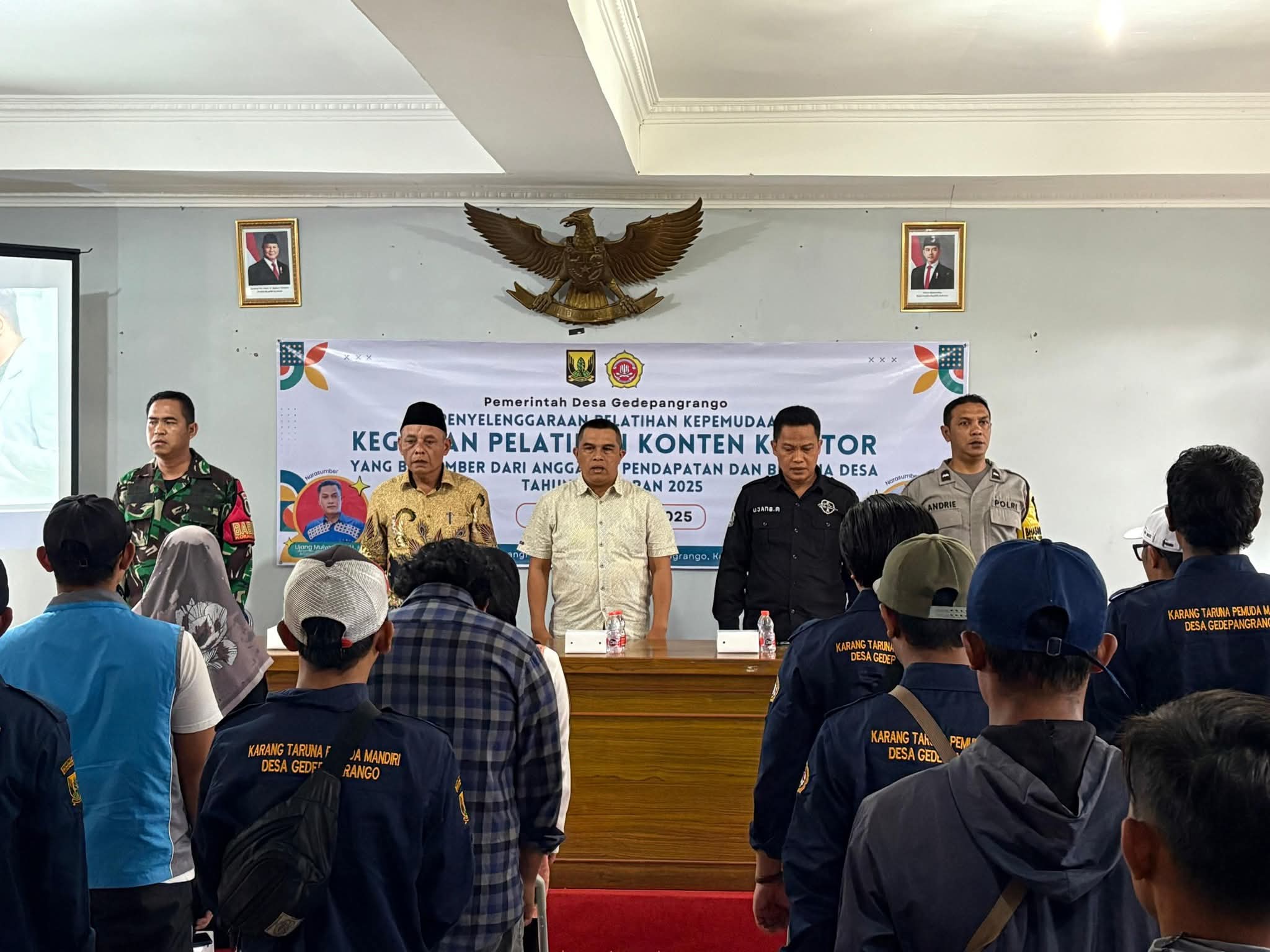 SUKABUMI KAB, sukabumizone.com || Pemerintah Desa Gede Pangrango, Kecamatan Kadudampit, Kabupaten Sukabumi, menggelar pelatihan konten kreator bagi generasi muda di Aula Desa Gede Pangrango, Jumat (24/10/2025). Kegiatan ini diikuti oleh 40 peserta yang merupakan pengurus Karang Taruna Desa Gede Pangrango.