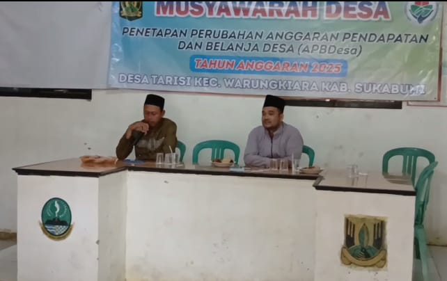 WARUNGKIARA, sukabumizone.com || Pemerintah Desa (Pemdes) Tarisi, Kecamatan Warungkiara, Kabupaten Sukabumi, menggelar Musyawarah Desa (Musdes) untuk Penetapan Perubahan Anggaran Pendapatan dan Belanja Desa (APBDes) Tahun Anggaran 2025. Agenda ini digelar sebagai bentuk penyesuaian kebutuhan pembangunan dan pemberdayaan masyarakat yang terus berkembang.