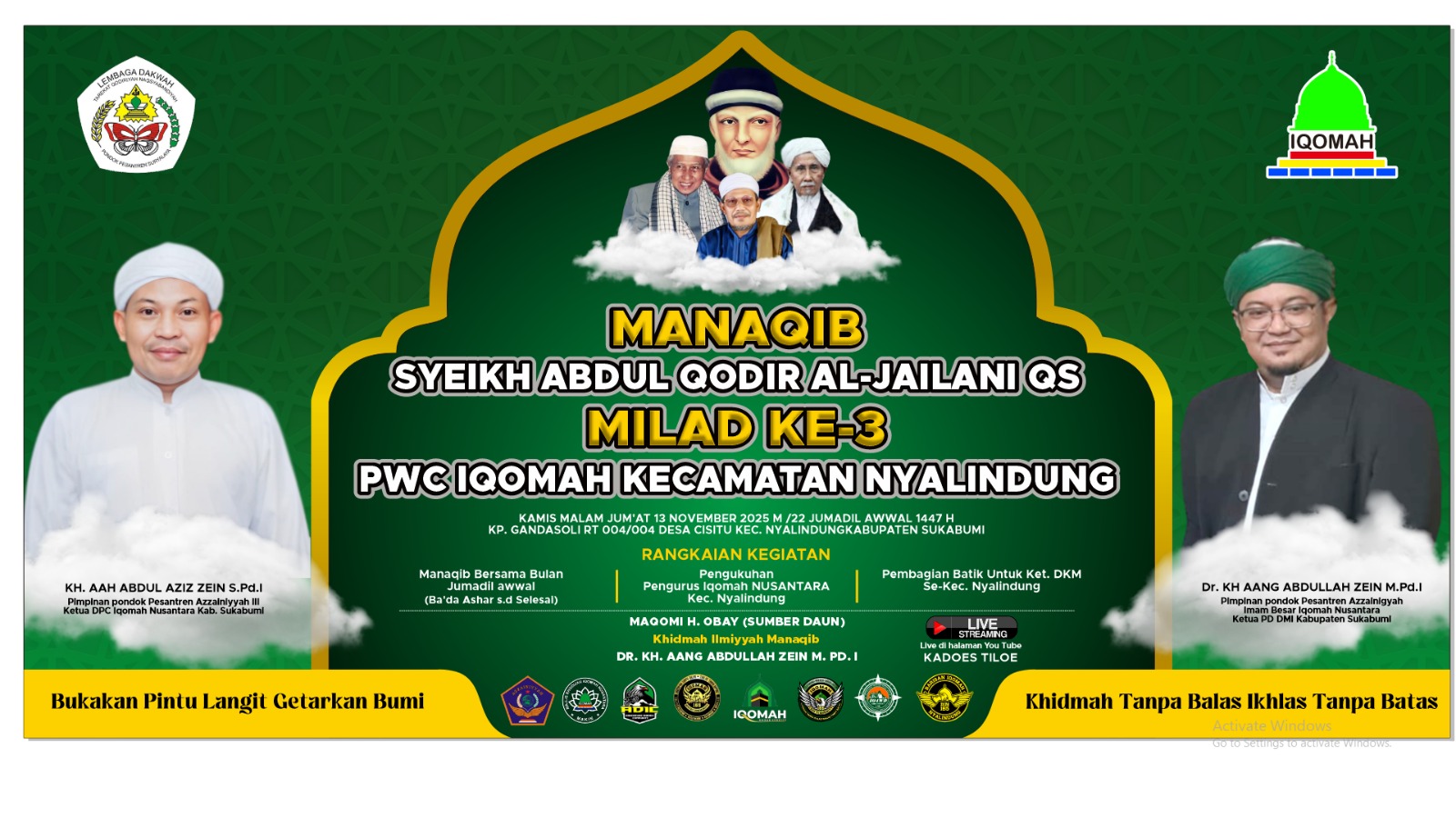 NYALINDUNG, sukabumizone.com || Peringatan Milad ke-3 PWC IQOMAH Kecamatan Nyalindung digelar khidmat di Desa Cisitu, Kecamatan Nyalindung, Kabupaten Sukabumi. Acara yang berlangsung pada Jumat malam itu menjadi ajang silaturahmi sekaligus momentum pengukuhan pengurus IQOMAH Nusantara tingkat kecamatan.