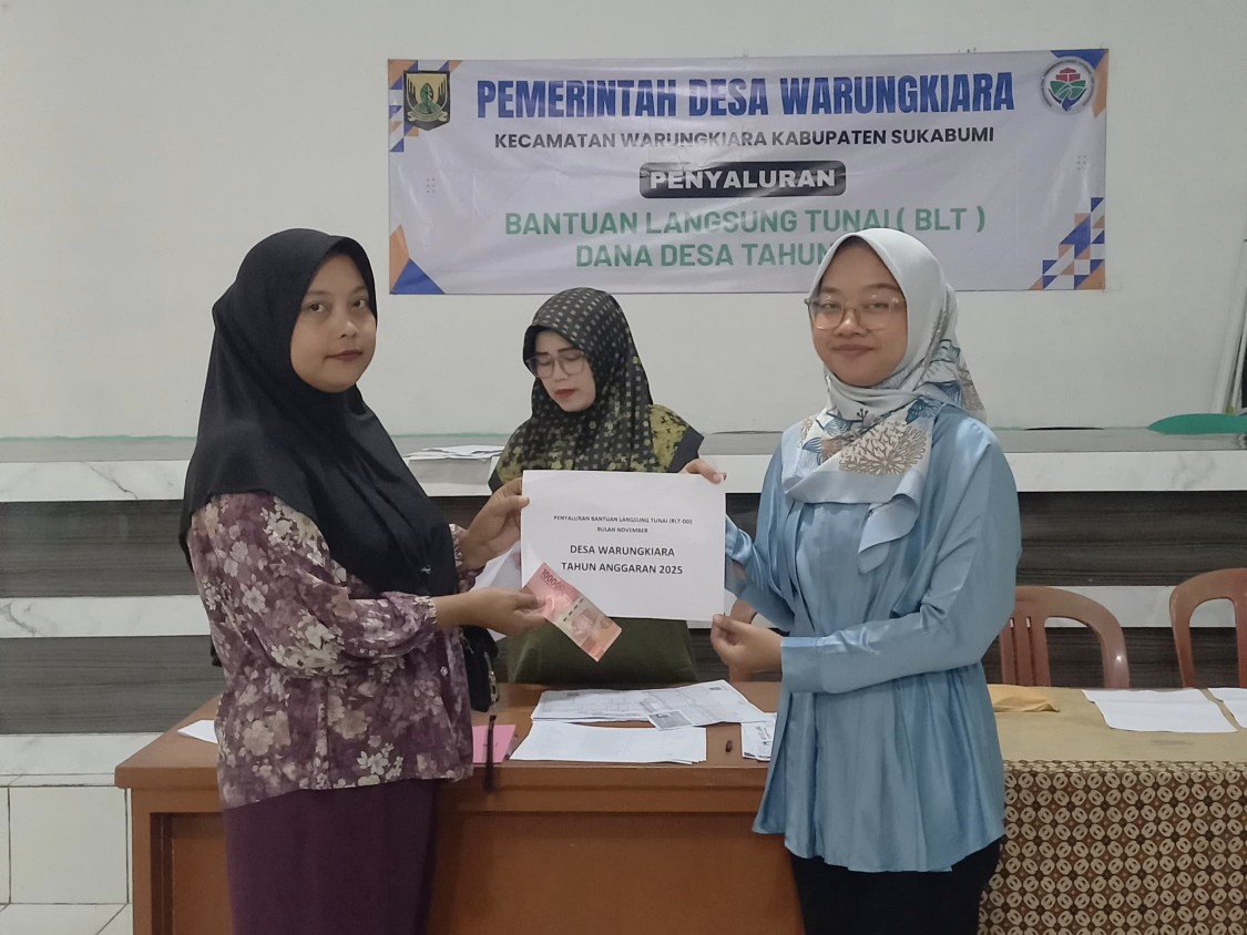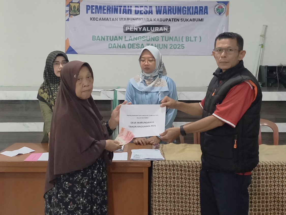 WARUNGKIARA, sukabumizone.com || Pemerintah Desa Warungkiara, Kecamatan Warungkiara, kembali menyalurkan Bantuan Langsung Tunai Dana Desa (BLT-DD) untuk periode November 2025. Penyaluran bantuan yang bersumber dari Dana Desa ini diberikan kepada 40 Keluarga Penerima Manfaat (KPM) yang masuk dalam kategori warga rentan dan terdampak ekonomi.