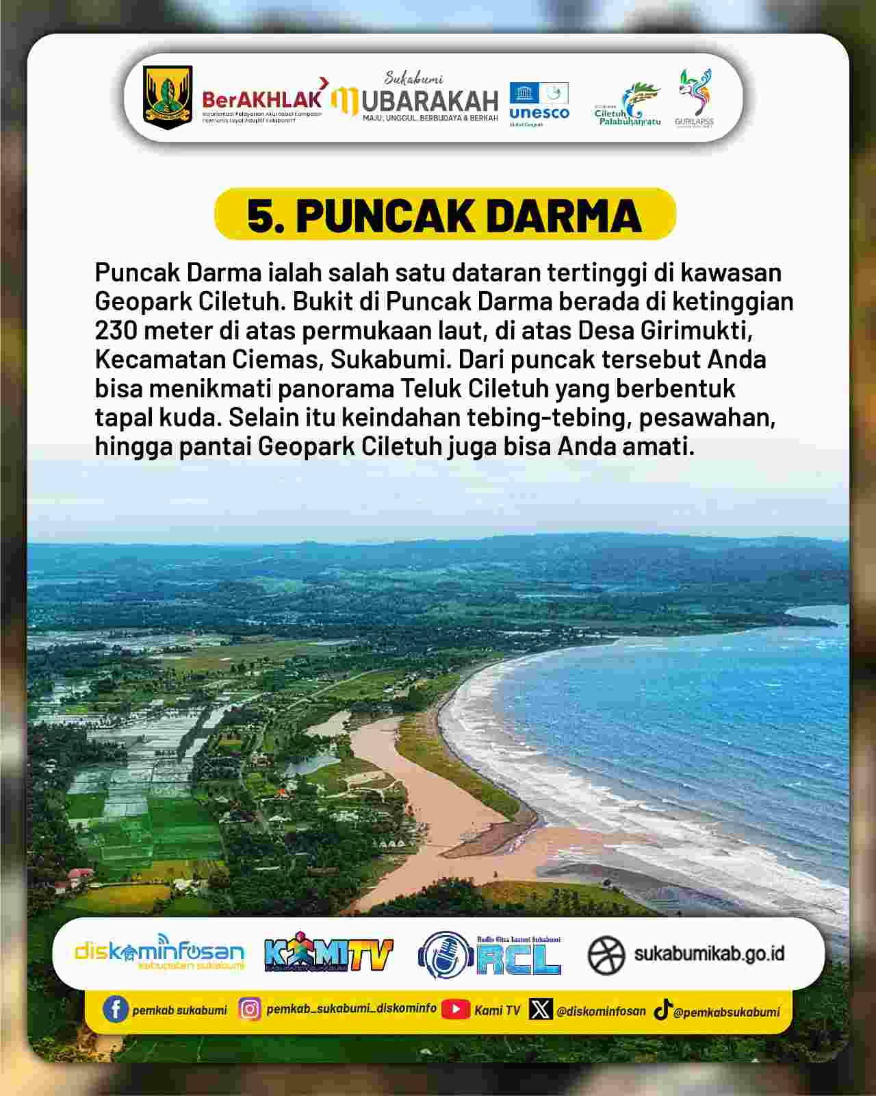Pemerintah Kabupaten Sukabumi juga menyiapkan layanan informasi wisata bagi masyarakat yang membutuhkan panduan tambahan. Warga dapat langsung menghubungi nomor layanan resmi yang tertera dalam materi publikasi Diskominfo Kabupaten Sukabumi.***